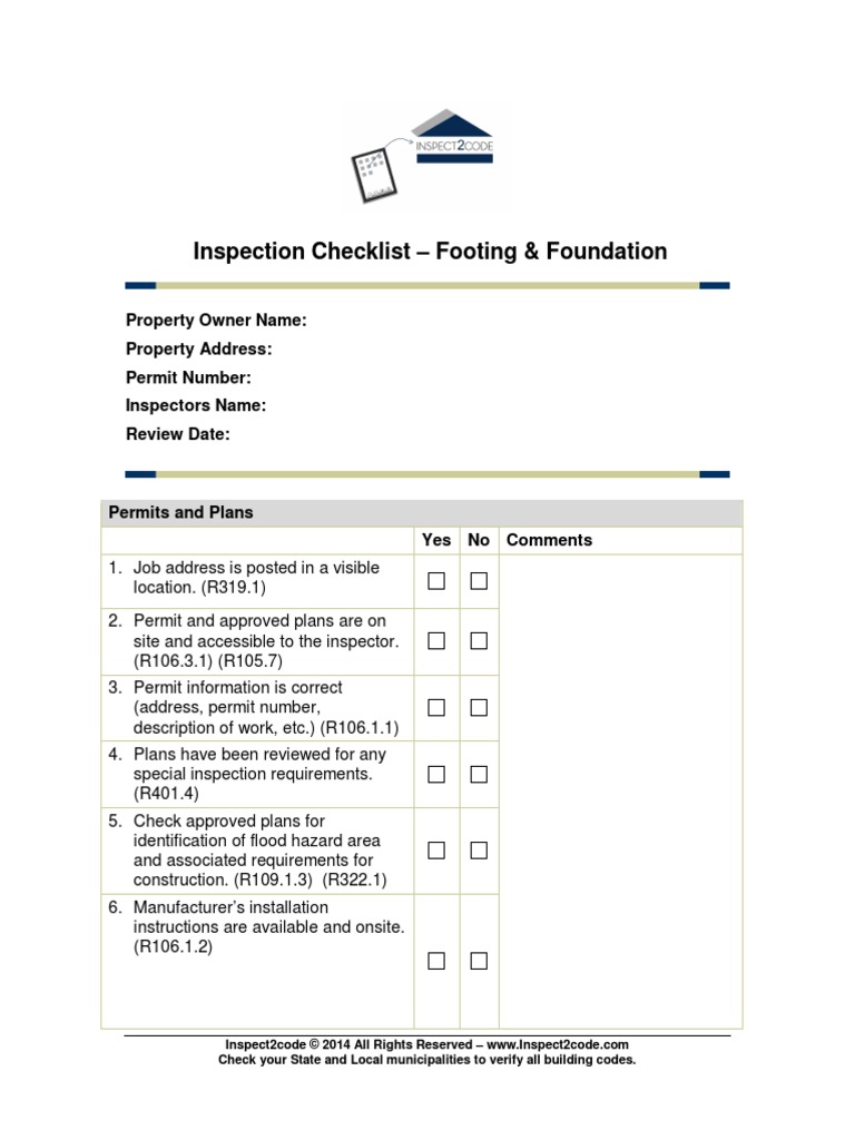Inspection Checklist 1_ Footing and Foundation Basement Concrete